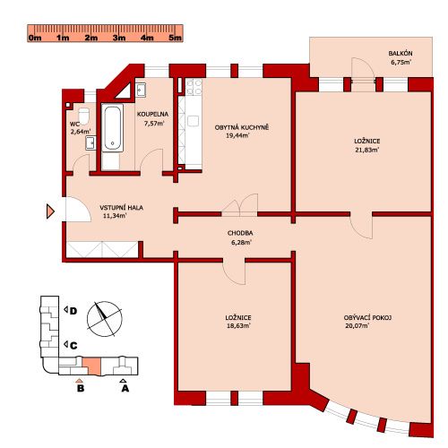 - Velikost: 121 m² – Prostorný byt s dostatkem místa pro komfortní bydlení.